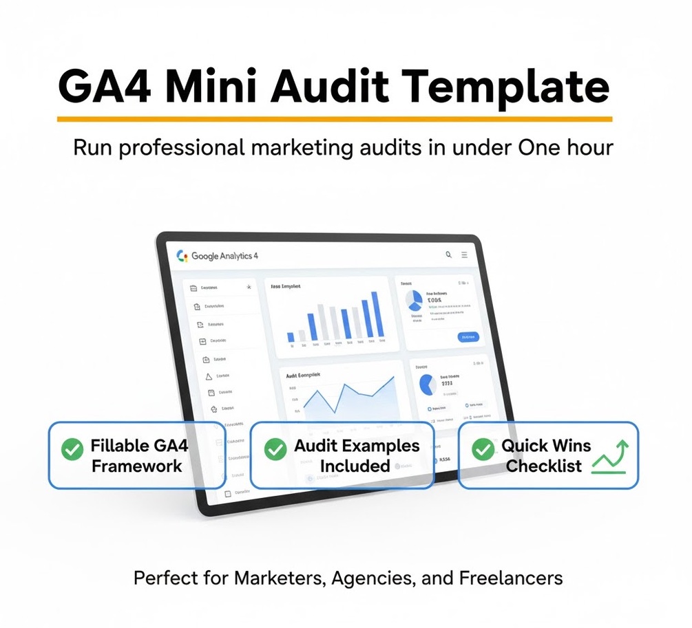 This GA4 Mini Audit Template helps you run quick, data-backed audits in under an hour even when you’re not a data analyst.